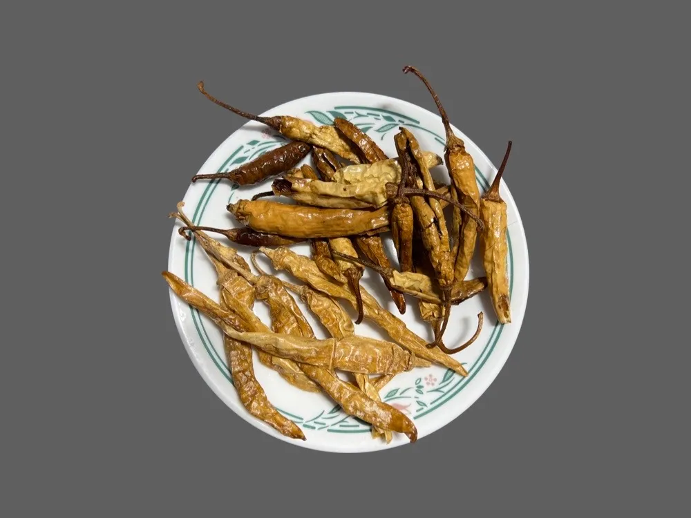 A classic Andhra accompaniment, Challa Mirchi is made by sun-drying green chillies that are soaked in curd and salt, giving them a unique tangy, spicy flavor. When deep-fried, they turn irresistibly crisp and make the perfect side dish with hot rice, dal, or curd rice.
