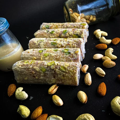 An indulgent twist to the classic Andhra sweet, Jaggery Kaju Pista Pootharekulu is crafted with wafer-thin rice starch layers filled with natural jaggery, crunchy cashews, pistachios, and a drizzle of ghee. Crispy, nutty, and rich in flavor, this festive delight is perfect for celebrations and gifting.